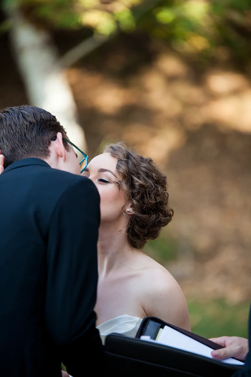 The sun was warm and cut through the trees making a beautiful outdoor wedding.