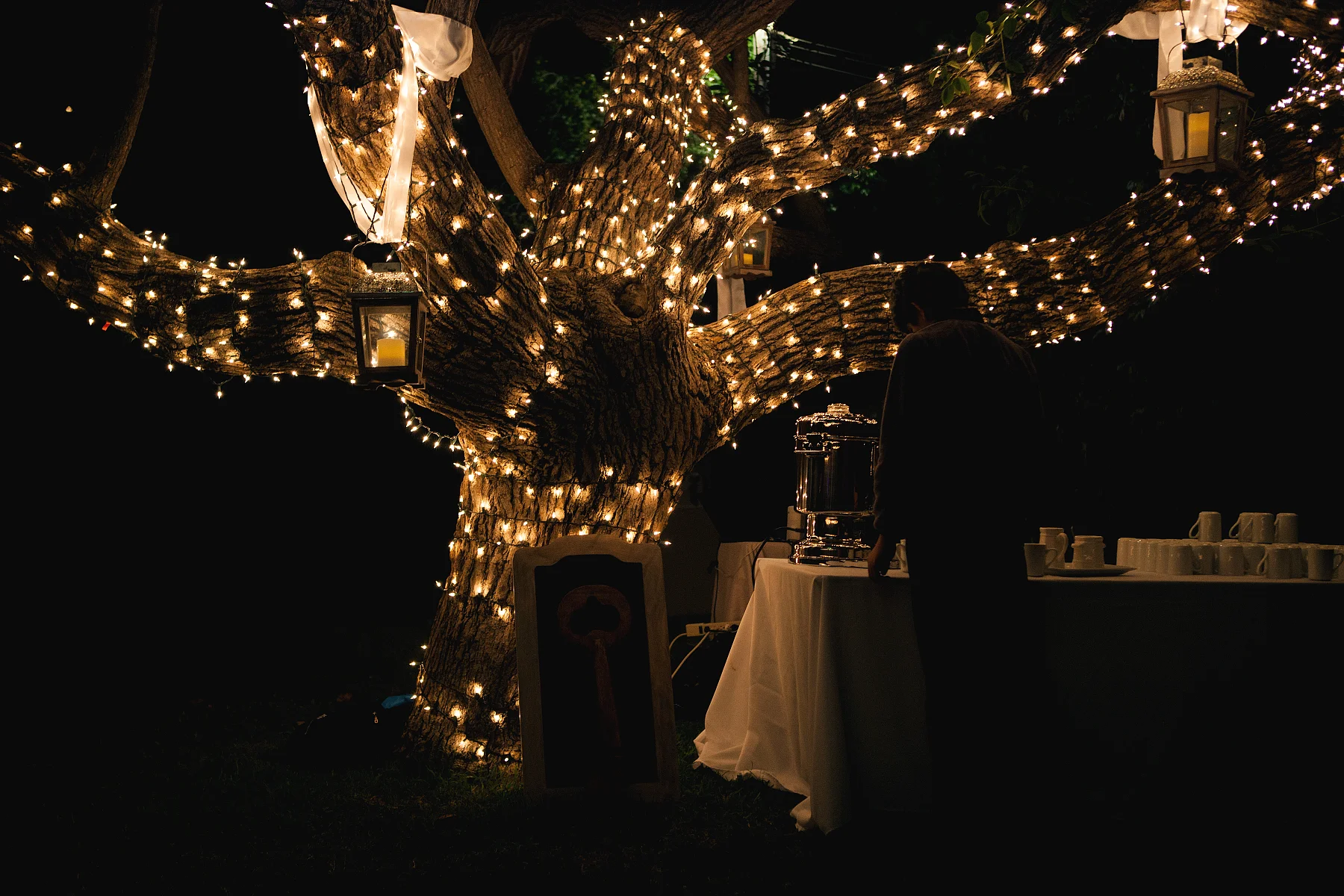 The reception was well decorated and was filled with dancing and laughter as their family and friend celebrated their special day as the sun set. The park was draped in white lights and lanterns, making a soft and warm atmosphere.
